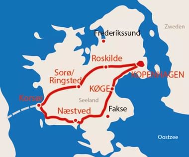 De laatste etappe brengt u terug naar het startpunt van uw fietstocht, de Deense hoofdstad Kopenhagen. Vanuit Albertslund is er een recent aangelegd fietspad dat u vrijwel zonder verkeer naar het centrum leidt. In de middag is er nog voldoende tijd om op eigen gelegenheid de stad te verkennen. Fiets naar het paleis Rosenborg met de kroonjuwelen van koningshuis, schilderkunst en andere objecten uit de geschiedenis of bezoek de Carlsberg Brouwerij voor een Carlsberg Beer Experience leer alles over dit uit 1847 stammende biermerk. Tijdens een wandeling kunt u terugkijken op alle prachtige indrukken van uw fietstocht door Seeland.