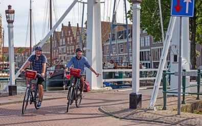 en bollen. Bovendien kunt u genieten van een verzameling prachtige architectuur in een nagebouwd Zuiderzeedorp van vroeger. Fiets verder langs de IJsselmeerkust, bovenop de oude zeedijk, en geniet van het uitzicht op boerenland, boomgaarden en schattige oude boerderijen.