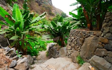 Een transfer brengt u naar de haven voor de overtocht naar Santo Antão (ca. 1 uur). Bij aankomst in Porto Novo brengt een taxi u naar Vila das Pombas. De wandeling voert door de prachtige Paul Vallei, één van de groenste van het eiland. Tropische gewassen als suikerriet, bananen en koffieplanten kleuren de steile berghellingen met zorgvuldig aangelegde groene terrassen en irrigatiekanalen waardoor het landschap een betoverende schoonheid krijgt. Daal af langs bergdorpjes en ontmoet de vriendelijke bewoners die wandelen op de Kaapverdische eilanden een warme en authentieke dimensie geven. Vanaf de bergkammen van de Pico Antonia kunt u genieten van het schitterende uitzicht over de Paul Vallei. Onderweg kunt u een glas lokale likeur proeven, een specialiteit van Santo Antão! Transfer naar Ponta do Sol.
