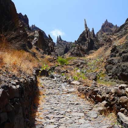 De wandelpaden slingeren langs berghellingen en bieden af en toe smalle passages bij diepe dalen of bergpassen. Santo Antão heeft vrijwel geen vlakke stukken; u bent voortdurend bezig met klimmen en dalen. De uitdaging zit niet alleen in de afstand, maar vooral in de steile afdalingen, sommige gedeelten kunnen gevoelig zijn voor hoogtevrees.
