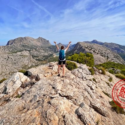 U wandelt langs het stuwmeer van Cuber naar de Pass de L'Ofre, waar u een prachtig panoramisch uitzicht op de toppen van de Serra de Tramuntana heeft. U volgt de haarspeldbochten bergopwaarts, naarmate u hoger klimt, wordt u begroet door een panoramisch uitzicht op de omliggende bergketens. U nadert de spectaculaire Es Cornador, een rotsachtig gebied met grillige formaties die lijken op de rug van een draak die in de aarde is begraven. Op de top ontvouwt zich een adembenemend uitzicht op de glinsterende Middellandse Zee die zich aan de horizon uitstrekt.